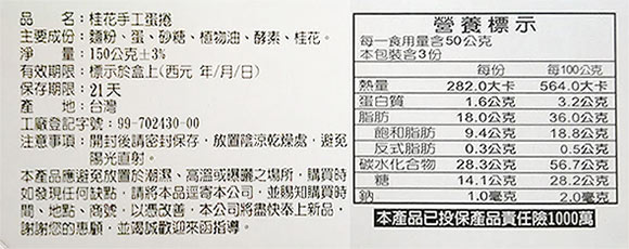 | 桂花手工蛋捲口味七種 桂花.原味.芝麻.起司.海苔.抹茶. 蔓越莓 (一支獨立包裝) |